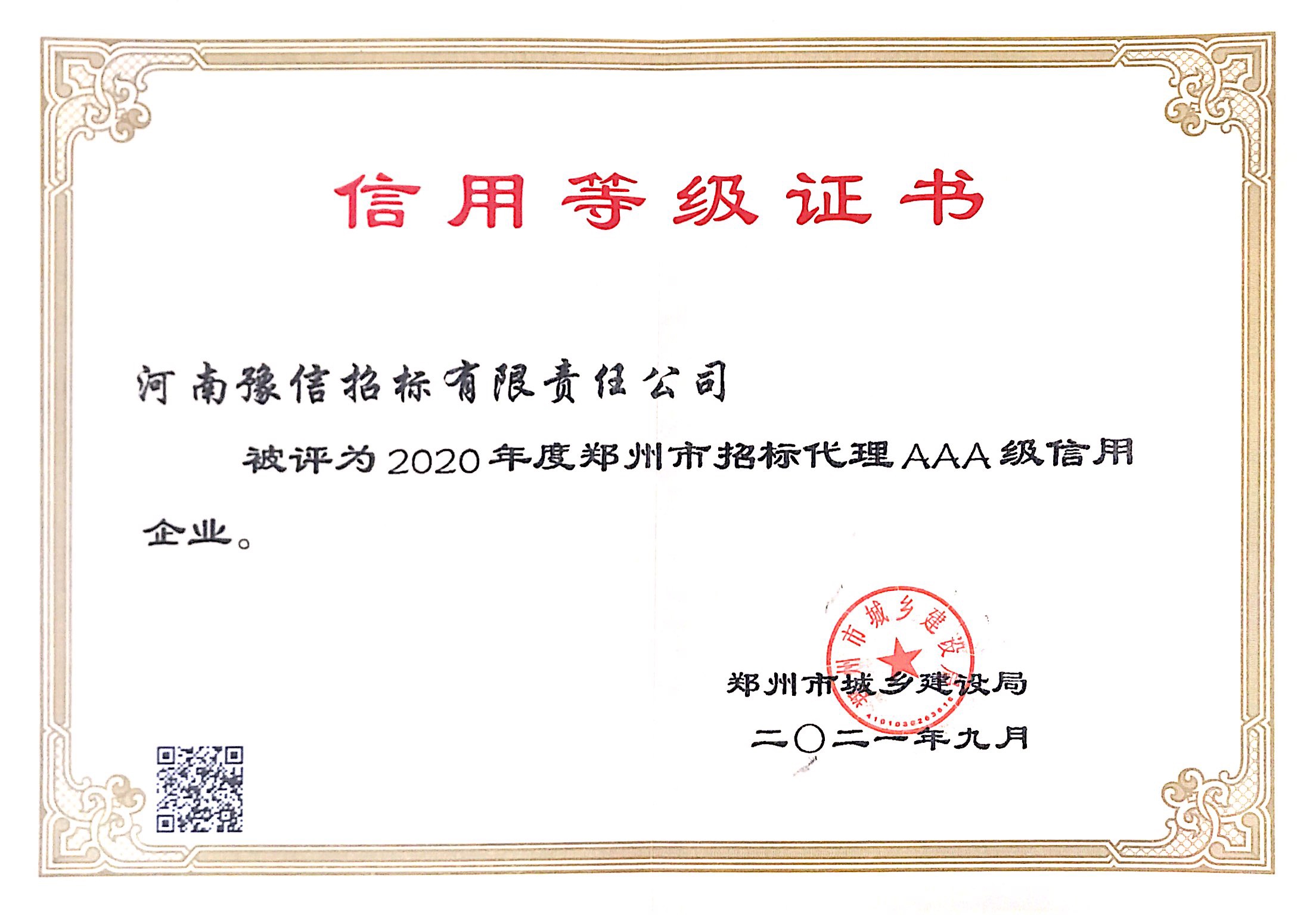 3A企業(yè)信用等級證書 -