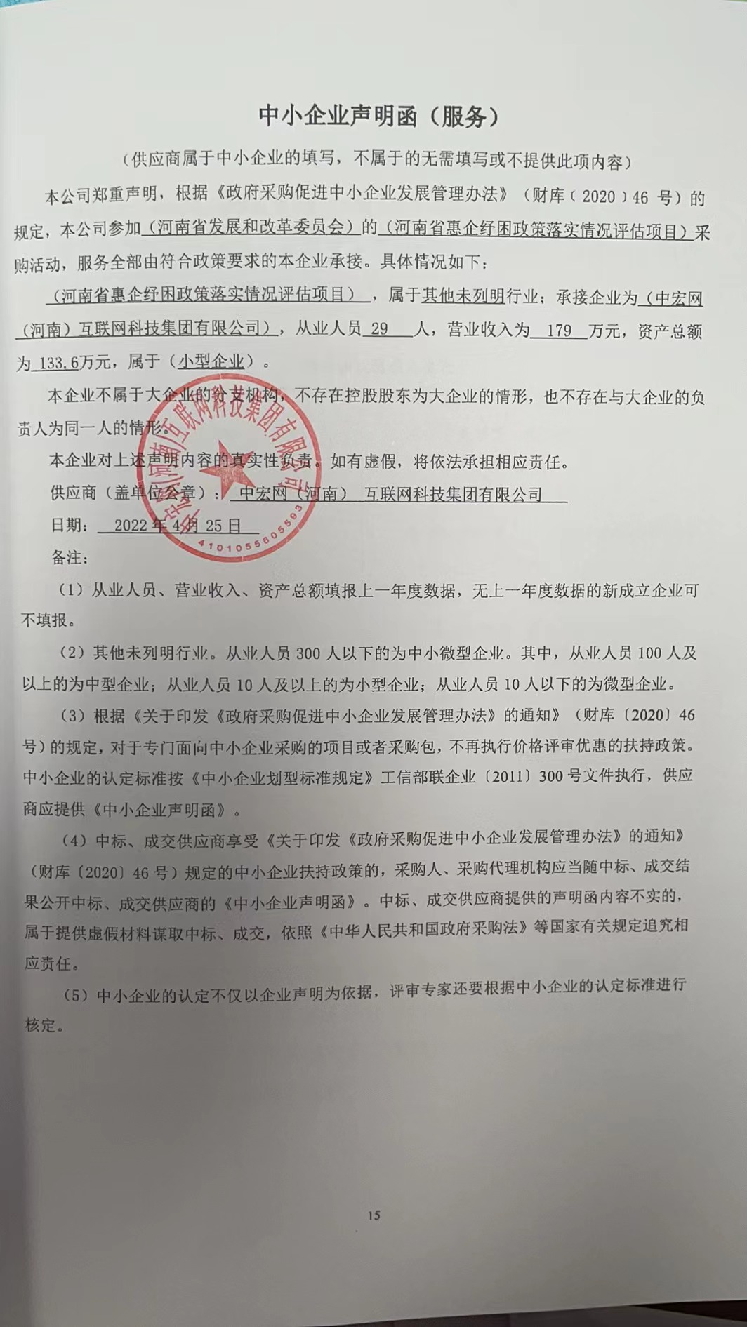 2、《中小企業(yè)聲明函》