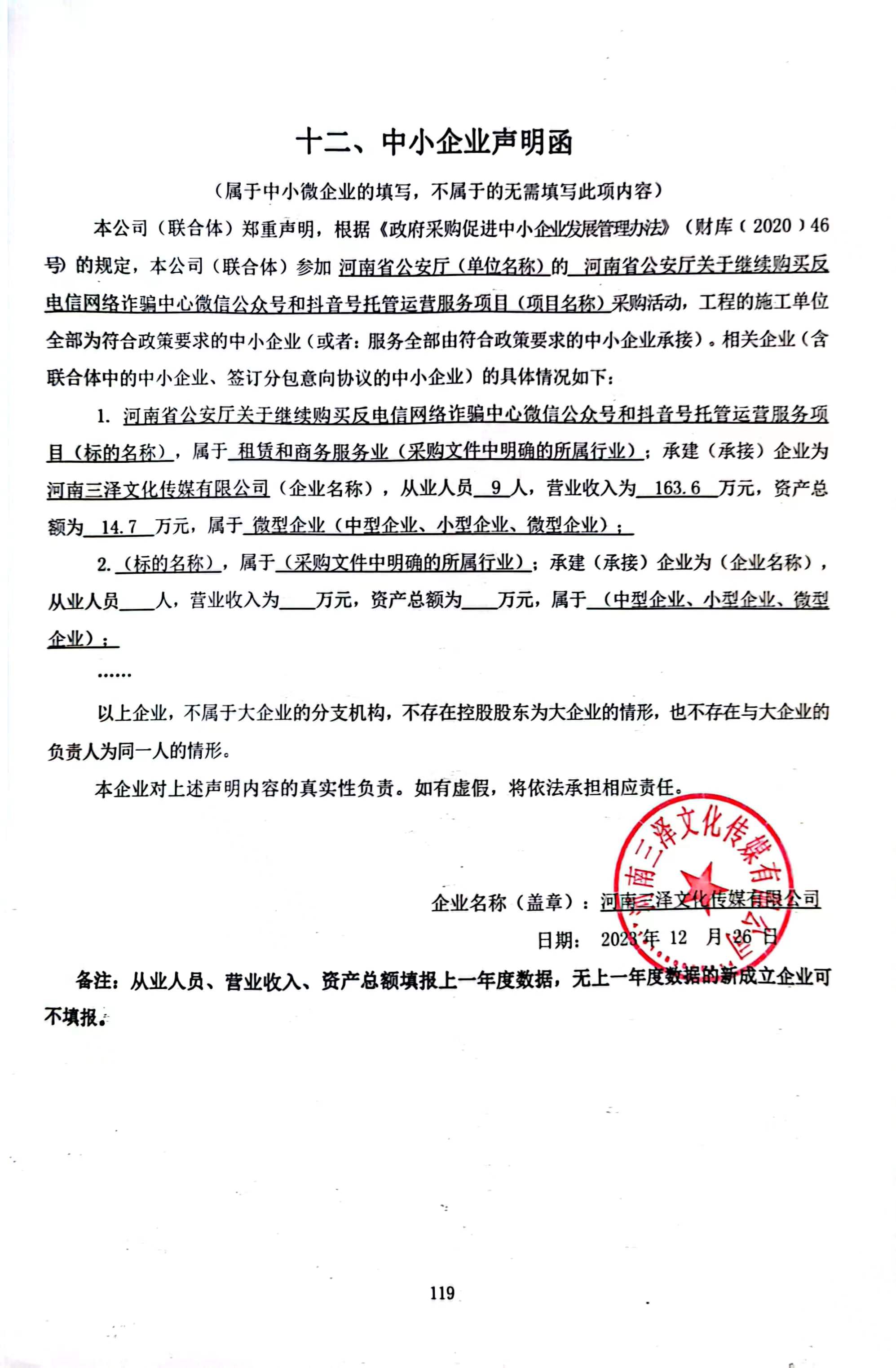 定稿-河南省公安廳關于繼續(xù)購買反電信網(wǎng)絡詐騙中心微信公眾號和抖音號托管運營服務項目磋商文件.pdf