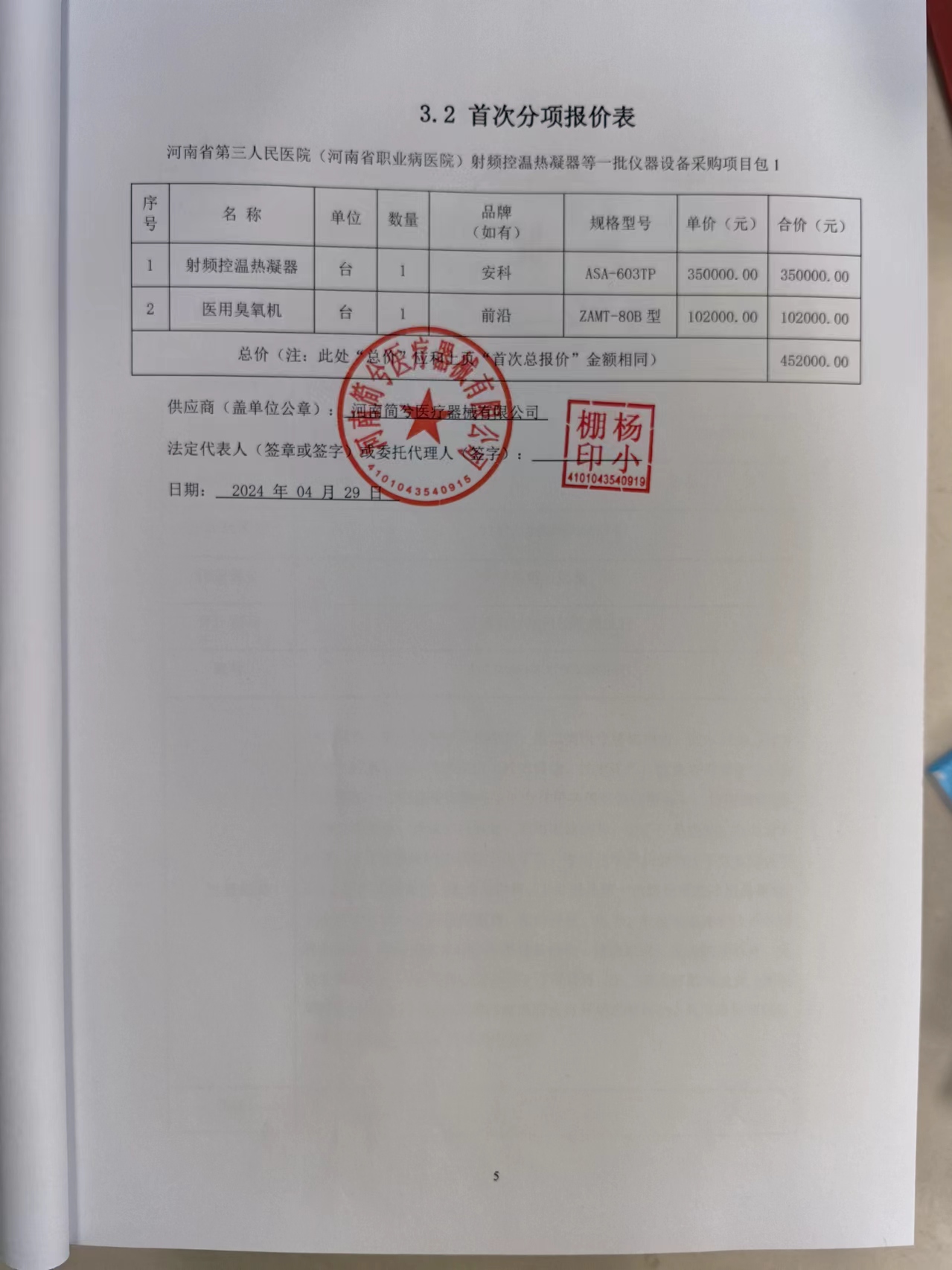 河南省第三人民醫(yī)院(河南省職業(yè)病醫(yī)院)射頻控溫熱凝器等一批儀器設(shè)備采購項目包1 | 河南簡兮醫(yī)療器械有限公司 | 河南省鄭州市管城回族區(qū)鼎瑞街005號1號倉庫3層338室 | 449000 | 金額 | 元 | ||||