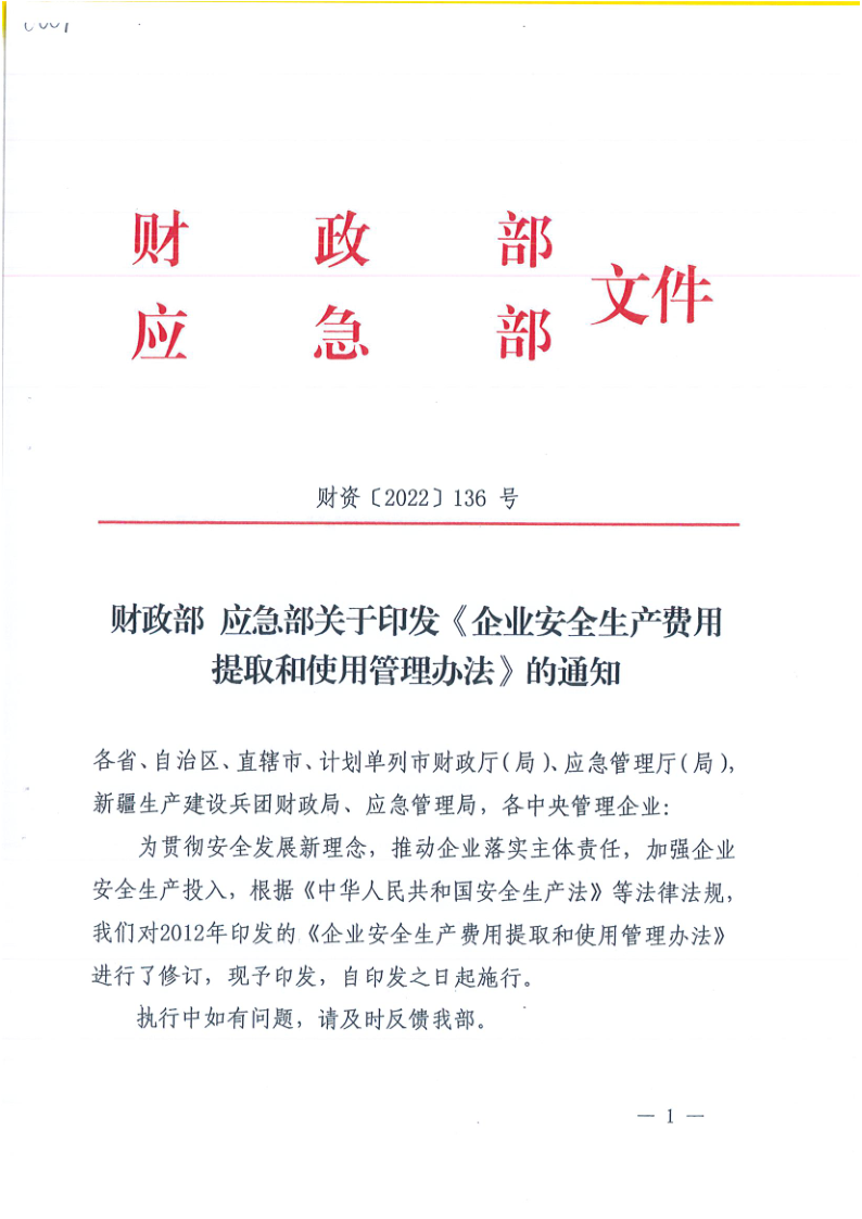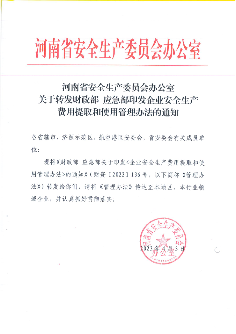 關于轉(zhuǎn)發(fā)財政部應急部印發(fā)企業(yè)安全生產(chǎn)費用提取和使用管理辦法的通知