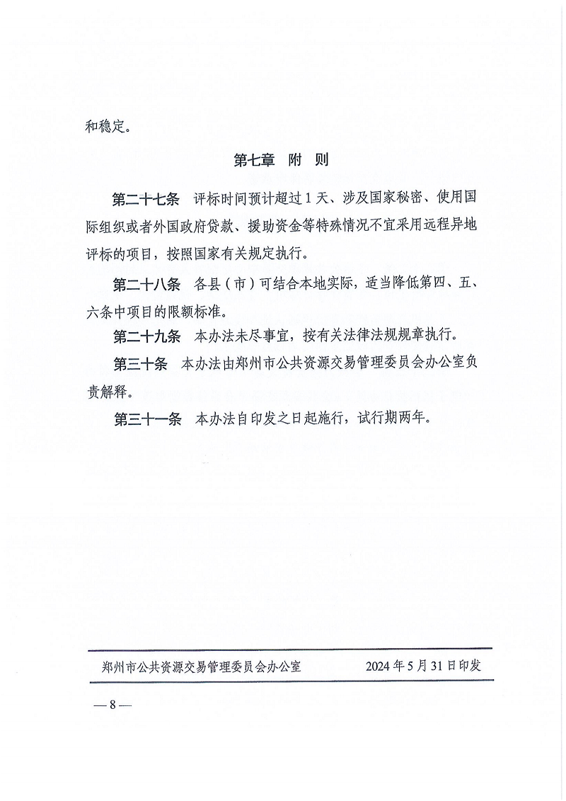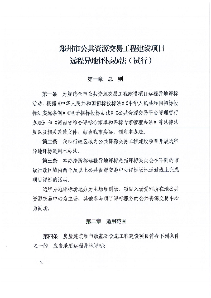 關(guān)于印發(fā)《鄭州市公共資源交易工程建設(shè)項目遠程異地評標辦法》的通知
