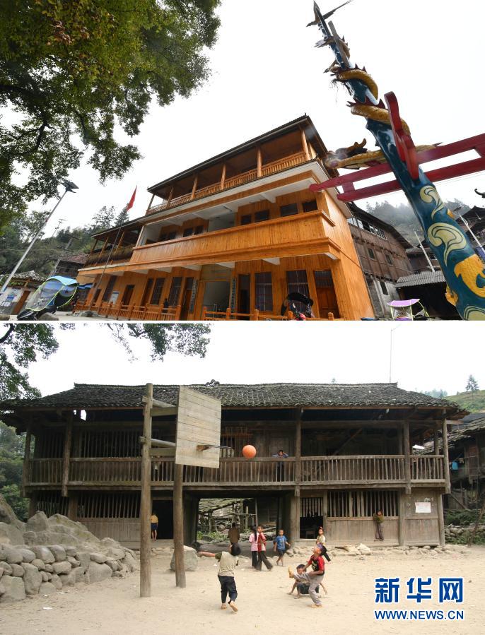 這是一張拼版照片,上圖為:2020年11月20日拍攝的完成改造的烏英教學點教學樓(新華社記者黃孝邦攝);下圖為:2006年9月19日拍攝的烏英教學點(龍濤攝)。新華社發(fā)
