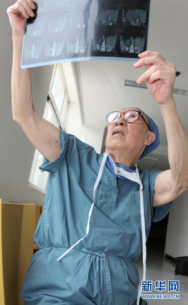 年近90的吳孟超院士在手術(shù)后分析患者的核磁共振結(jié)果(2011年4月13日攝)。新華社發(fā)(張鵬 攝)