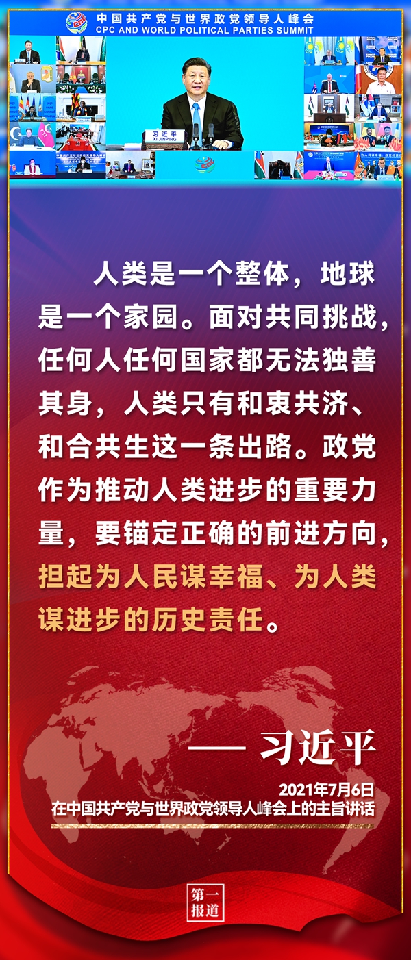 在中國共產(chǎn)黨成立100周年之際,習近平同來自160多個國家的500多個政黨和政治組織等領(lǐng)導人、逾萬名政黨和各界代表共聚“云端”,探討“為人民謀幸福與政黨的責任”這個重大命題。