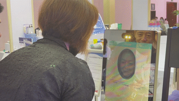 站在“魔鏡”前閉眼,“魔鏡”就會(huì)為測(cè)試者拍照。等待幾秒鐘后,它即可自動(dòng)分析出測(cè)試者皮膚年齡、狀態(tài),并精準(zhǔn)對(duì)接需求,個(gè)性化建議測(cè)試者適用的護(hù)膚品。“魔鏡”旁,為緩解大眾脫發(fā)焦慮而設(shè)計(jì)的激光生發(fā)儀、生發(fā)帶十分引人關(guān)注,不時(shí)有參觀(guān)者試戴并咨詢(xún)采購(gòu)事宜。