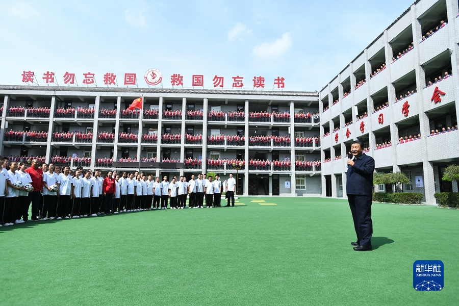 9月13日至14日,中共中央總書記、國家主席、中央軍委主席習(xí)近平在陜西省榆林市考察。這是14日上午,習(xí)近平在綏德實(shí)驗(yàn)中學(xué)考察時(shí),同師生親切交流。新華社記者 謝環(huán)馳 攝