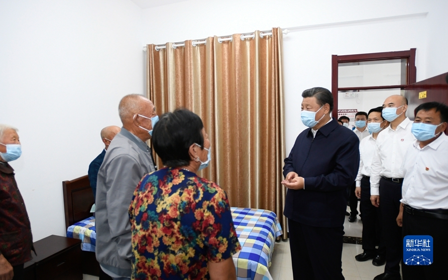 9月13日至14日,中共中央總書記、國家主席、中央軍委主席習(xí)近平在陜西省榆林市考察。這是14日下午,習(xí)近平在綏德縣張家砭鎮(zhèn)郝家橋村互助幸福院,同村里的老人親切交流。新華社記者 李學(xué)仁 攝