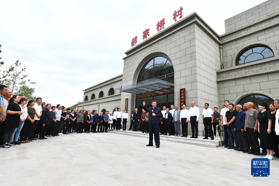 位于綏德縣城西南的張家砭鎮(zhèn)郝家橋村,是綏德地委在抗戰(zhàn)時(shí)期經(jīng)過調(diào)查研究發(fā)現(xiàn)的一個(gè)模范村,通過開展“村村學(xué)習(xí)郝家橋,人人學(xué)習(xí)劉玉厚”活動(dòng),掀起了大生產(chǎn)熱潮。黨的十八大以來,郝家橋村積極發(fā)展特色產(chǎn)業(yè),村容村貌和村民生活發(fā)生了深刻變化,榮獲“全國脫貧攻堅(jiān)楷模”榮譽(yù)稱號(hào)。14日下午,習(xí)近平來到這里,詳細(xì)觀看村史展覽,了解這個(gè)“紅色山村”的光榮革命歷史以及革命傳統(tǒng)傳承情況。隨后,習(xí)近平來到村民侯志榮家中看望。侯志榮一家曾經(jīng)因病致貧,靠著各級(jí)幫扶和自身努力2016年擺脫貧困。習(xí)近平強(qiáng)調(diào),看到你們一家人日子越過越好、人丁興旺,我感到很欣慰。讓鄉(xiāng)親們過好光景,是我們黨始終不渝的初心使命,共產(chǎn)黨就要把這件事情干好,不斷交上好答卷。全黨全國全社會(huì)都要大力弘揚(yáng)脫貧攻堅(jiān)精神,奮發(fā)圖強(qiáng)、自力更生,不斷奪取全面建設(shè)社會(huì)主義現(xiàn)代化國家新的更大勝利。