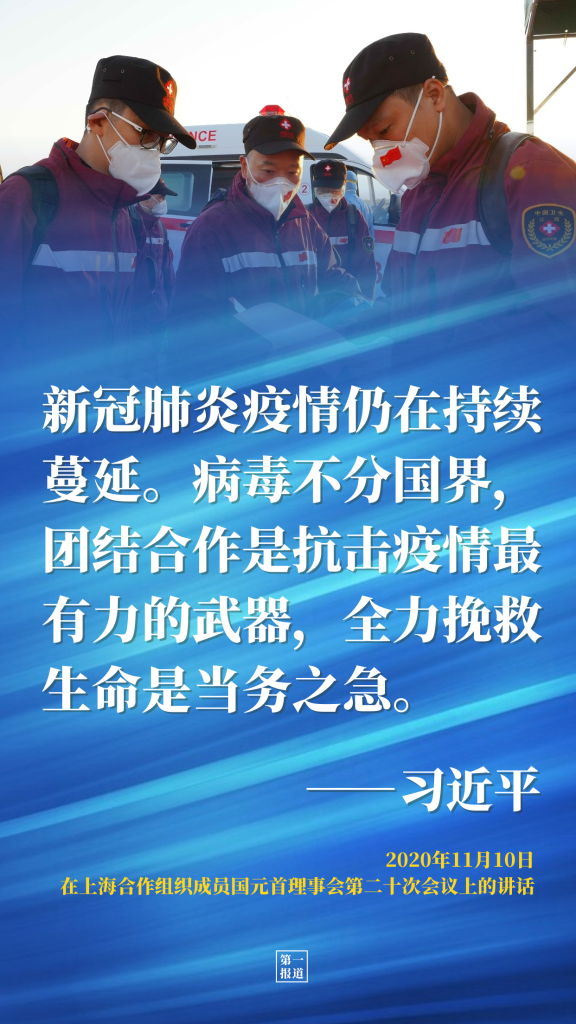 疫情暴發(fā)以來,上合大家庭高舉團結(jié)抗疫旗幟。從一批批醫(yī)療物資到一瓶瓶疫苗,從一場場“云會議”到一支支醫(yī)療隊,中國為構(gòu)建上合衛(wèi)生健康共同體作出積極貢獻。