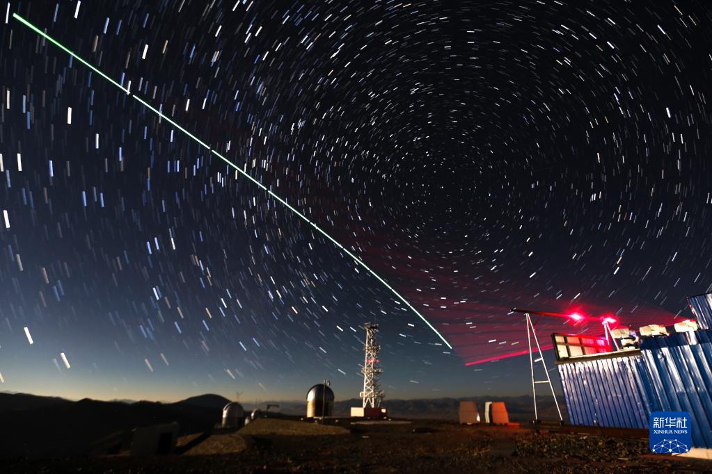 2016年12月9日,“墨子號(hào)”量子科學(xué)實(shí)驗(yàn)衛(wèi)星與阿里量子隱形傳態(tài)實(shí)驗(yàn)平臺(tái)建立天地鏈路(合成照片)。新華社記者 金立旺 攝