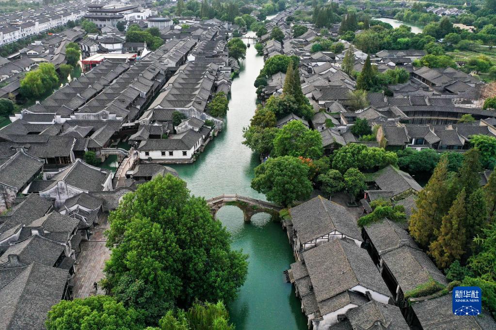 9月25日拍攝的烏鎮(zhèn)西柵景區(qū)(無人機照片)。新華社記者 黃宗治 攝
