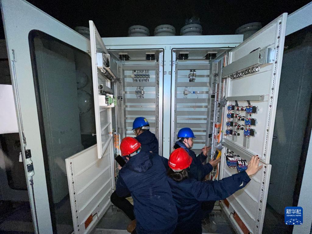 “韓舒技師創(chuàng)新工作室”團(tuán)隊(duì)在一處突發(fā)照明電源失電現(xiàn)場(chǎng)搶修(2月12日手機(jī)拍攝)。新華社發(fā)