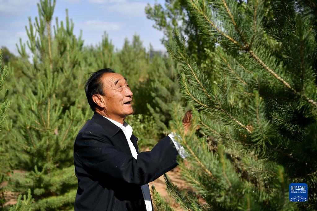 “七一勛章”獲得者石光銀在自己最早治理的“狼窩沙”林地里(2020年5月30日攝)。新華社記者 劉瀟 攝