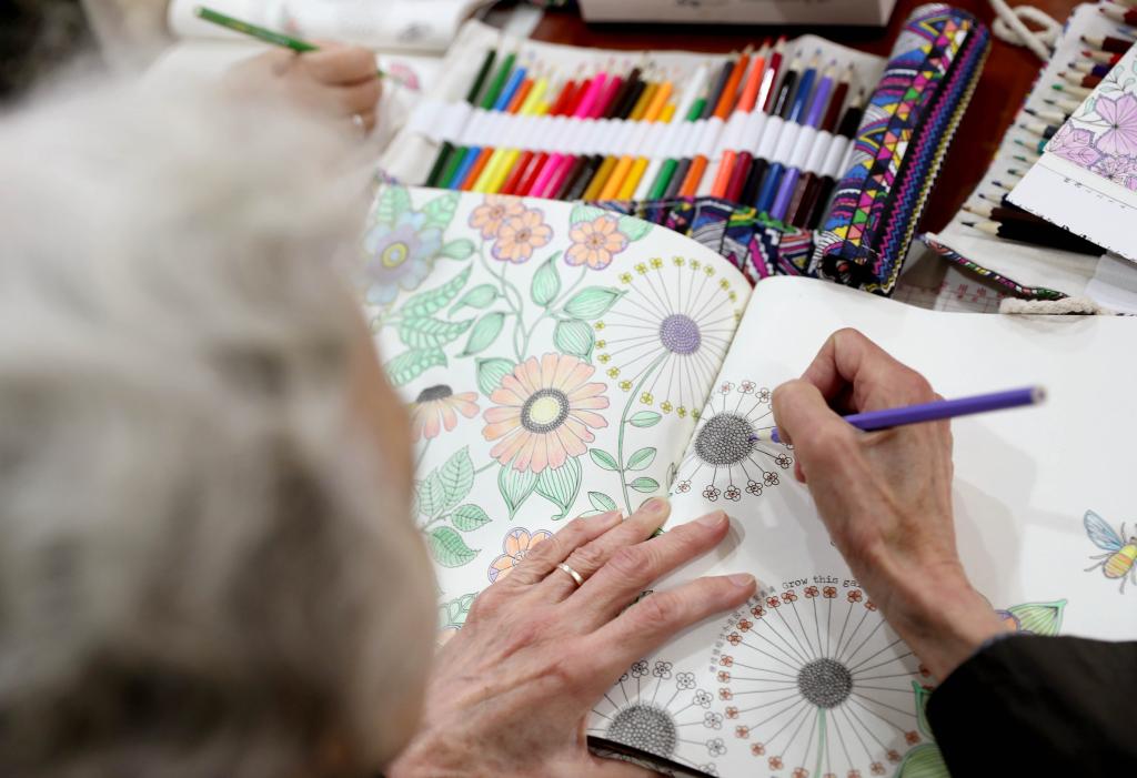2020年11月,在上海市靜安區(qū)江寧路街道愛(ài)老家園,一位老年人在通過(guò)圖畫填色進(jìn)行康復(fù)訓(xùn)練(新華社記者劉穎 攝)