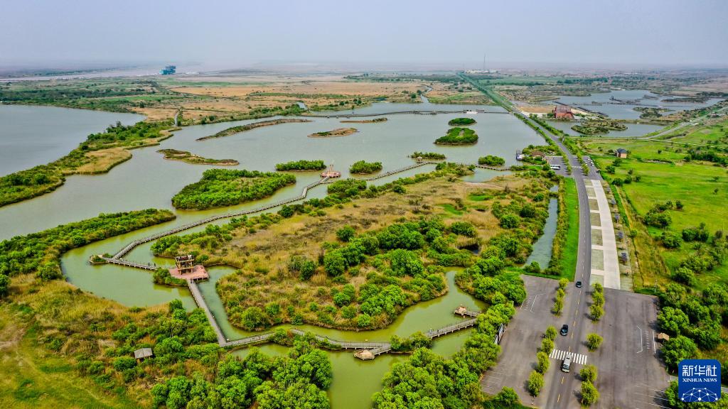 這是山東黃河三角洲國家級自然保護(hù)區(qū)景色(5月13日攝,無人機(jī)照片)。新華社記者 郭緒雷 攝