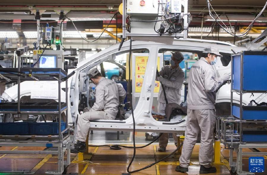 2020年3月24日,工人在湖北武漢東風乘用車公司工廠總裝車間的流水線上作業(yè)。2020年3月下旬左右,武漢各企業(yè)開始陸續(xù)復工復產(chǎn)。新華社記者 肖藝九 攝