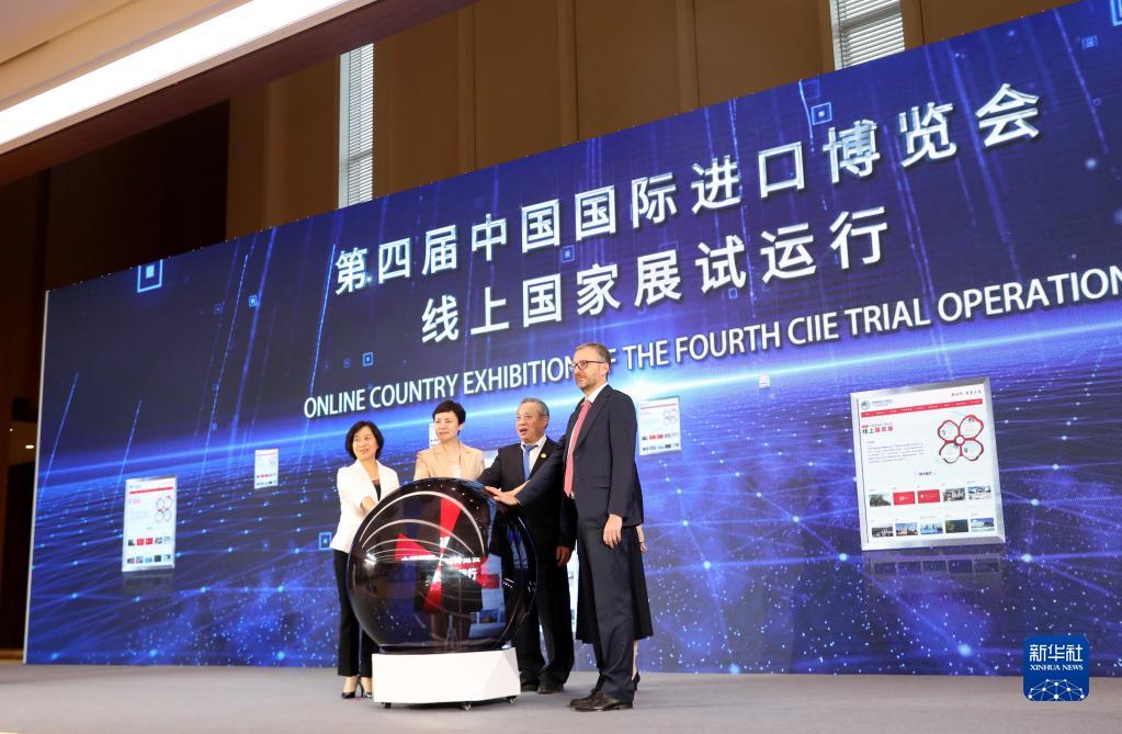 10月13日,第四屆中國國際進(jìn)口博覽會(huì)線上國家展試運(yùn)行啟動(dòng)儀式在國家會(huì)展中心(上海)舉行。新華社記者 方喆 攝