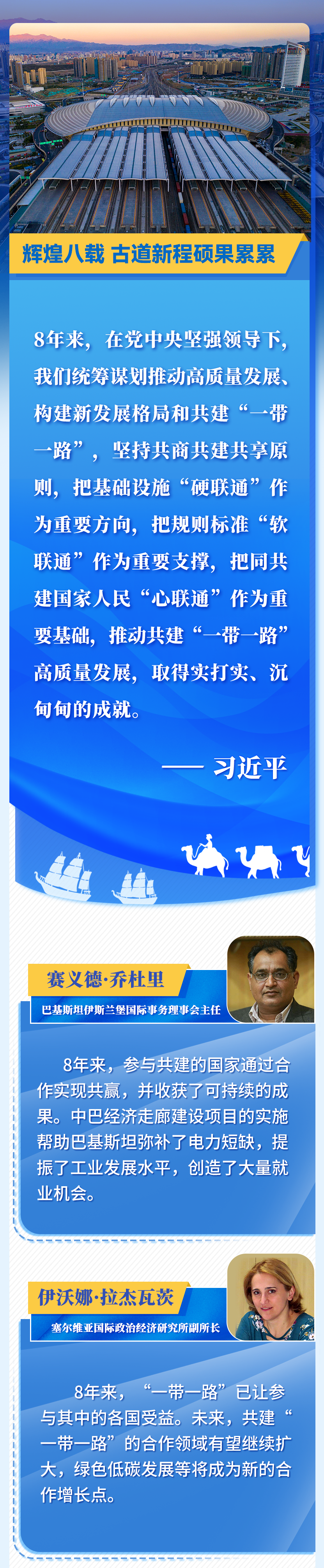 中共中央總書記、國家主席、中央軍委主席習近平19日在北京出席第三次“一帶一路”建設座談會并發(fā)表重要講話。多國人士和我海外項目人員表示,“一帶一路”倡議提出8年來取得實實在在成果,習近平主席的重要講話為繼續(xù)推動共建“一帶一路”高質量發(fā)展擘畫藍圖、指明方向,期待共建“一帶一路”不斷取得新成效,更好造福各國人民。