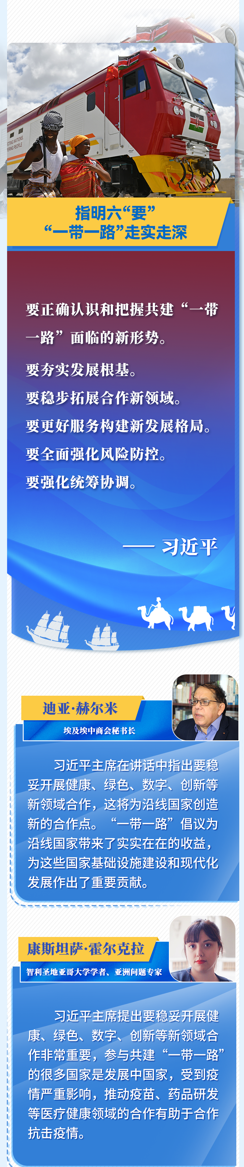 習近平指出,要正確認識和把握共建“一帶一路”面臨的新形勢。總體上看,和平與發(fā)展的時代主題沒有改變,經(jīng)濟全球化大方向沒有變,國際格局發(fā)展戰(zhàn)略態(tài)勢對我有利,共建“一帶一路”仍面臨重要機遇。同時,世界百年未有之大變局正加速演變,新一輪科技革命和產(chǎn)業(yè)變革帶來的激烈競爭前所未有,氣候變化、疫情防控等全球性問題對人類社會帶來的影響前所未有,共建“一帶一路”國際環(huán)境日趨復雜。我們要保持戰(zhàn)略定力,抓住戰(zhàn)略機遇,統(tǒng)籌發(fā)展和安全、統(tǒng)籌國內和國際、統(tǒng)籌合作和斗爭、統(tǒng)籌存量和增量、統(tǒng)籌整體和重點,積極應對挑戰(zhàn),趨利避害,奮勇前進。