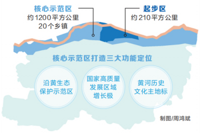《規(guī)劃》明確了核心示范區(qū)打造沿黃生態(tài)保護(hù)示范區(qū)、國家高質(zhì)量發(fā)展區(qū)域增長極、黃河歷史文化主地標(biāo)的三大功能定位和建設(shè)成為大保護(hù)大治理展示窗口、新理念新場(chǎng)景展示窗口和華夏源黃河魂展示窗口的發(fā)展定位。