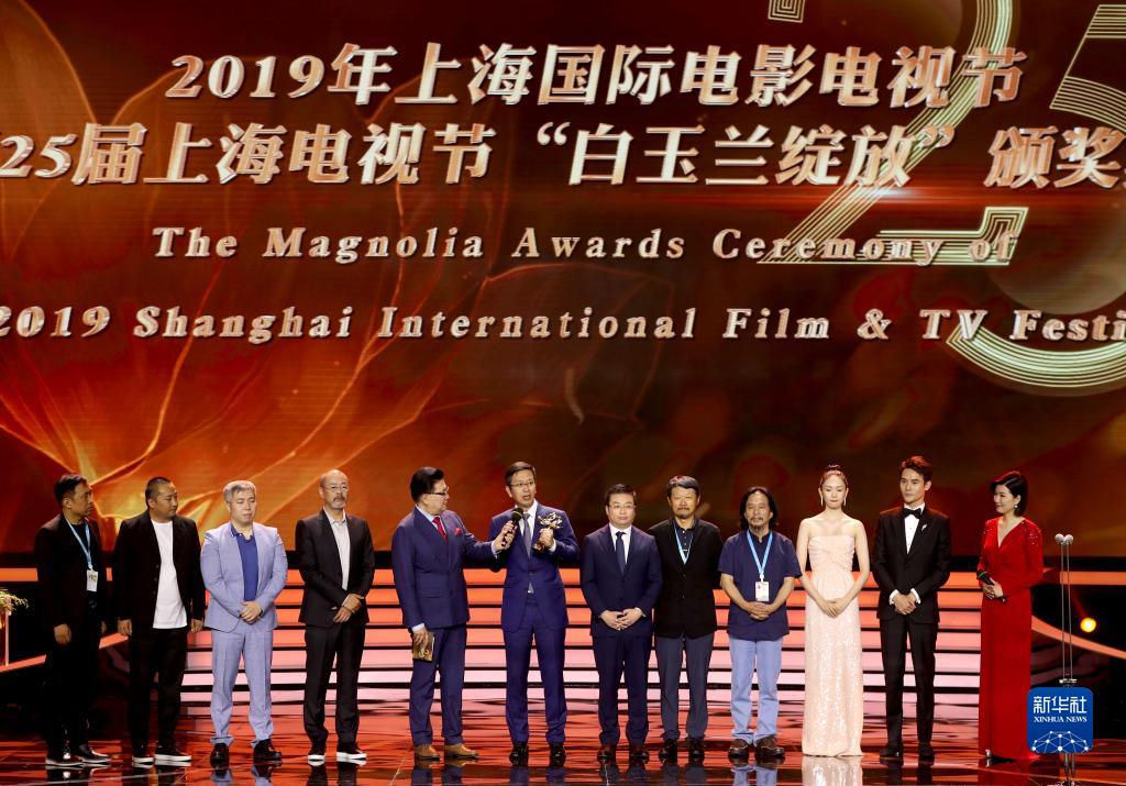 2019年6月14日,第25屆上海電視節(jié)落下帷幕,獲得“最佳中國(guó)電視劇”的《大江大河》主創(chuàng)上臺(tái)領(lǐng)獎(jiǎng)。新華社記者 劉穎 攝