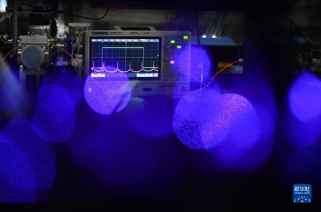 2月7日,在中國(guó)科學(xué)院國(guó)家授時(shí)中心空間鍶原子光鐘實(shí)驗(yàn)室,測(cè)量?jī)x器顯示相關(guān)實(shí)驗(yàn)信號(hào)。新華社記者 張博文 攝
