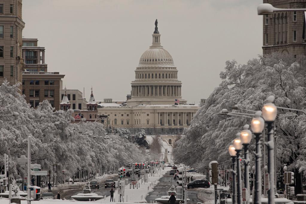 這是1月3日在美國首都華盛頓拍攝的雪后的國會(huì)大廈。新華社發(fā)(阿倫攝)