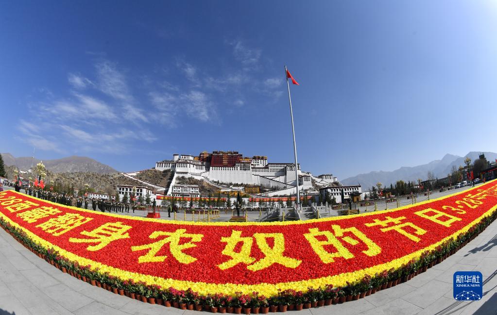 3月的雪域高原,楊柳吐綠,又一個(gè)春天如約而至。西藏各族群眾穿上節(jié)日的盛裝,跳起歡快的鍋莊舞,迎接西藏百萬(wàn)農(nóng)奴解放紀(jì)念日。