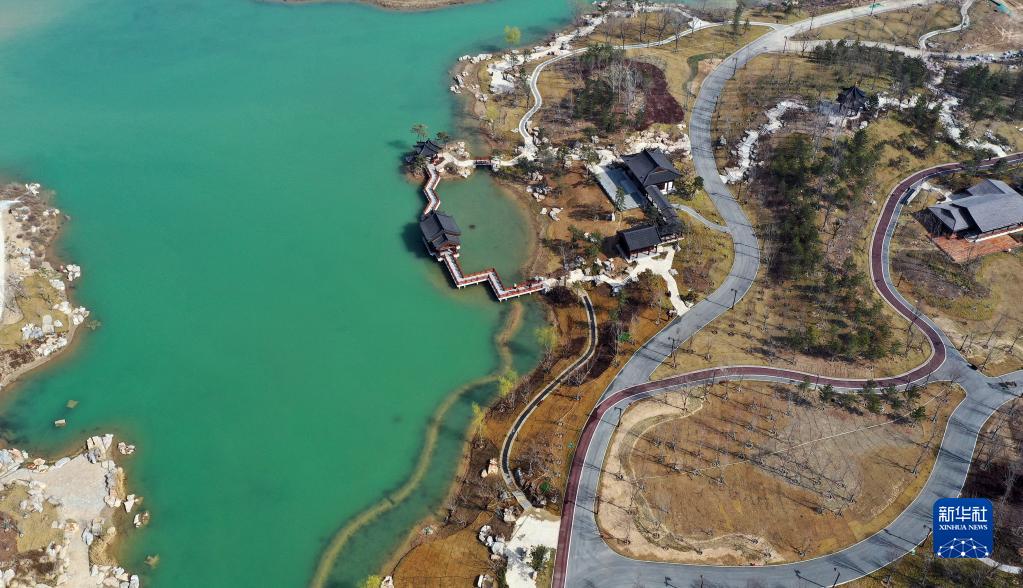這是3月28日拍攝的雄安新區(qū)悅容公園景色(無人機照片)。新華社記者 駱學峰 攝