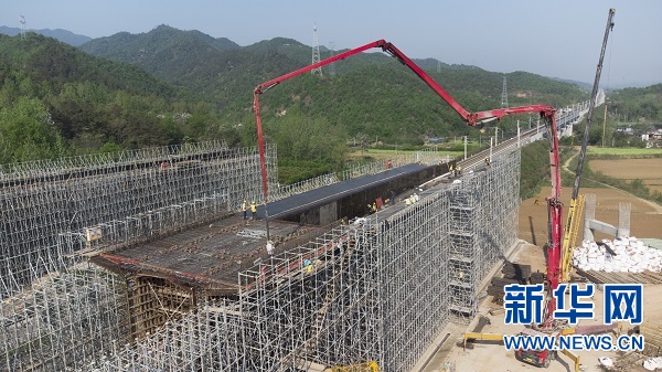 “此次一次性澆筑的混凝土約1100噸,由于澆筑過程時間長,技術(shù)人員須嚴格按照技術(shù)交底指導(dǎo)現(xiàn)場施工,認真落實安全質(zhì)量責(zé)任制,重點對澆筑速度、混凝土質(zhì)量以及澆筑過程中模板變形情況進行監(jiān)控,確保澆筑順利完成?!敝需F四局澠淅高速跨浩吉立交項目負責(zé)人說。