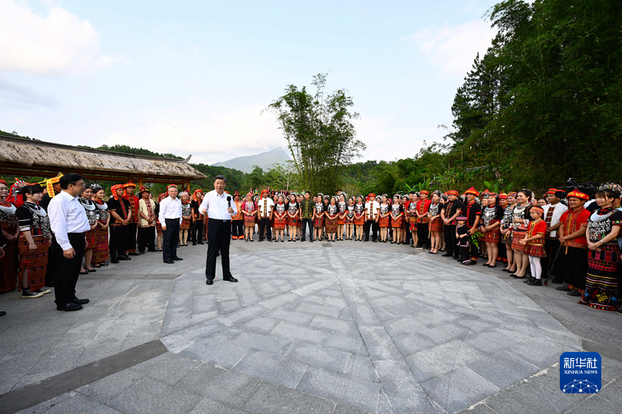 4月10日至13日,中共中央總書記、國家主席、中央軍委主席習近平在海南考察。這是11日下午,習近平在五指山市水滿鄉(xiāng)毛納村同村民們親切交流。新華社記者 謝環(huán)馳 攝