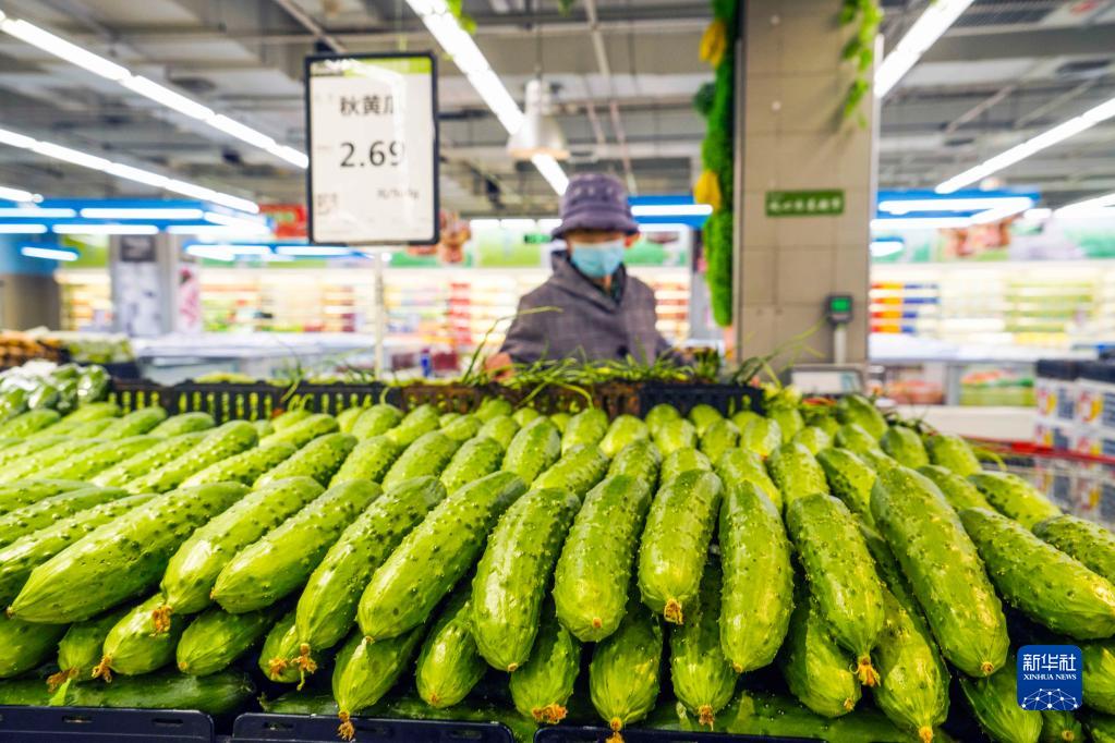 消費(fèi)者在河北唐山遵化市一家超市選購蔬菜(4月11日攝)。新華社發(fā)(劉滿倉攝)