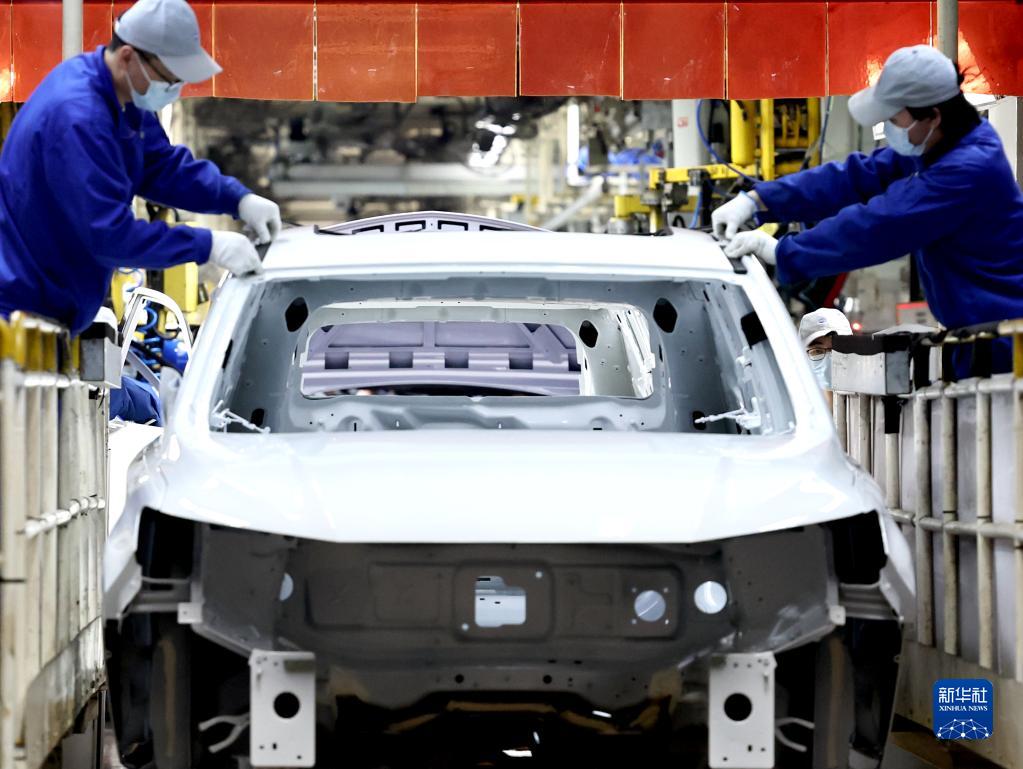 上汽臨港乘用車(chē)工廠(chǎng)工人在總裝車(chē)間工作(4月23日攝)。新華社記者 陳建力 攝