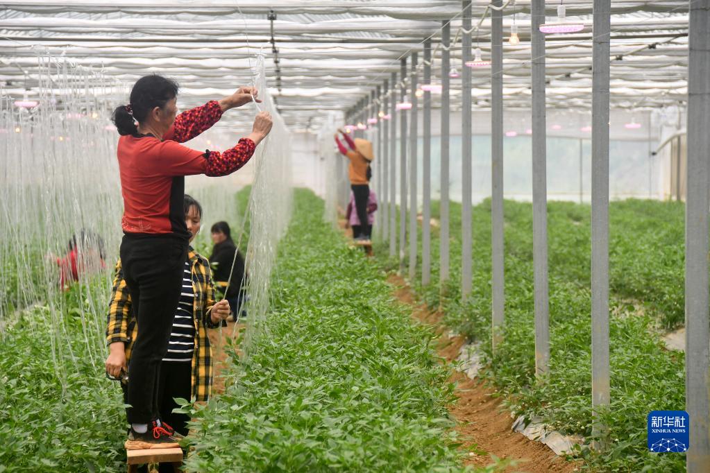 在湖南省湘陰縣樟樹鎮(zhèn),椒農(nóng)對樟樹港辣椒進行管護(4月13日攝)。新華社記者 周勉 攝