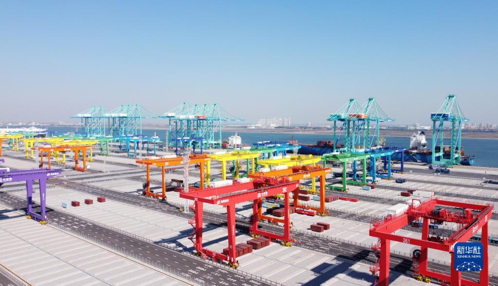 這是天津港北疆港區(qū)C段智能化集裝箱碼頭(2021年10月17日攝,無人機照片)。新華社記者 趙子碩 攝