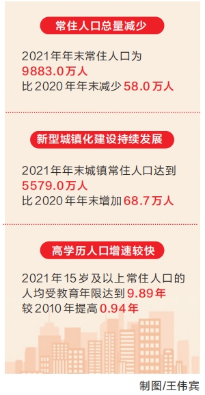 高學(xué)歷人口增速較快。2021年,全省15歲及以上常住人口的人均受教育年限達(dá)到9.89年,較2020年提高0.10年,較2010年提高0.94年。同時(shí),全省常住人口中,每10萬(wàn)人中擁有大學(xué)(指大專(zhuān)及以上)文化程度的人口為12244人,高中(含中專(zhuān))15739人,初中36619人,小學(xué)24821人。大學(xué)(指大專(zhuān)及以上)文化程度的人口增長(zhǎng)最快。(記者 李鵬)