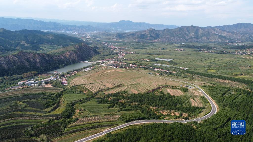 這是2021年8月30日拍攝的內(nèi)蒙古赤峰市喀喇沁旗馬鞍山村風(fēng)光(無人機(jī)照片)。新華社記者 貝赫 攝