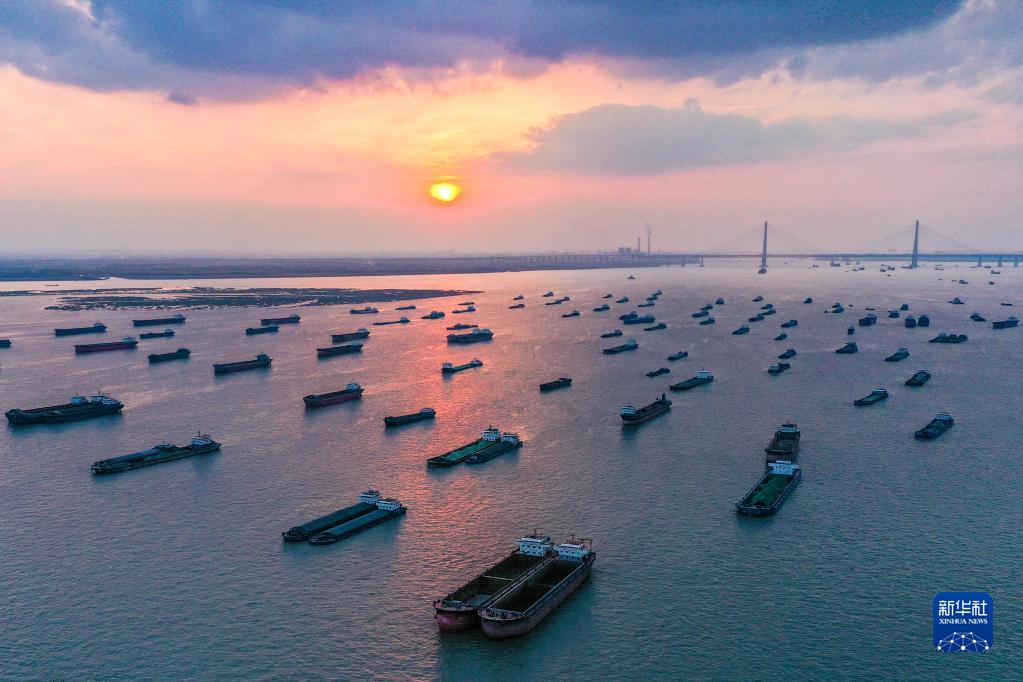 這是2021年10月25日拍攝的長(zhǎng)江南通段(無人機(jī)照片)。新華社記者 李博 攝
