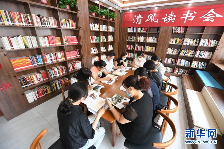 2020年6月23日,河北省棗強縣紀(jì)委監(jiān)委組織部分單位黨員干部,在縣文化廣電和旅游局舉行“清風(fēng)讀書會”。新華社記者 李曉果 攝