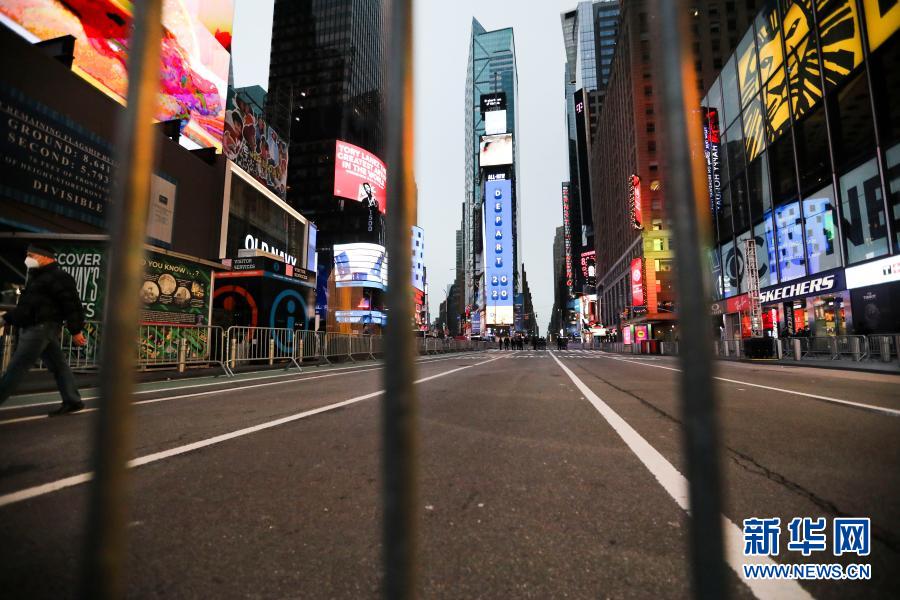 這是2020年12月31日拍攝的空蕩的美國(guó)紐約時(shí)報(bào)廣場(chǎng)。新華社記者 王迎 攝