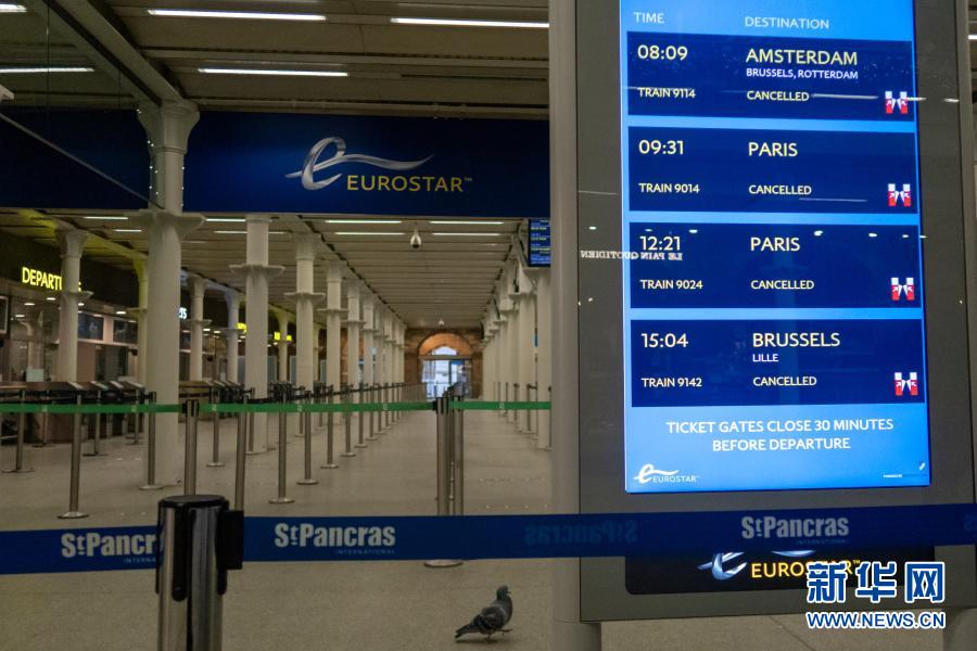 2020年12月21日,英國(guó)倫敦圣潘克拉斯火車站國(guó)際出發(fā)大廳內(nèi)顯示,多趟“歐洲之星”列車被取消。新華社發(fā)(蒂姆·愛(ài)爾蘭攝)
