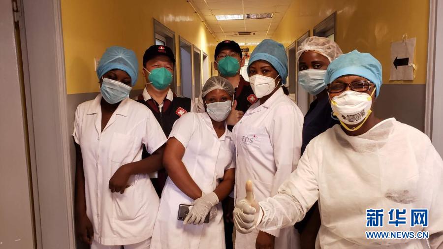 ??2020年5月26日,中國(guó)抗疫醫(yī)療專家組在剛果(布)首都布拉柴維爾指導(dǎo)新冠肺炎病房建設(shè)時(shí),與當(dāng)?shù)匾痪€醫(yī)務(wù)人員合影。新華社發(fā)
