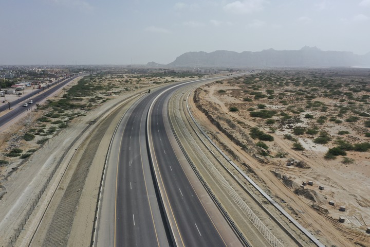 這是在巴基斯坦西南部俾路支省瓜達爾航拍的瓜達爾東灣快速路。