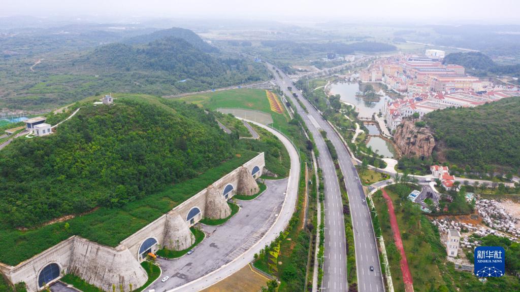 貴安新區(qū)華為云數(shù)據(jù)中心(以道路為界右側(cè))和騰訊貴安七星數(shù)據(jù)中心(左側(cè))(2022年5月24日攝,無人機照片)。新華社記者 歐東衢 攝