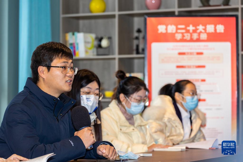 12月5日,在山東省棗莊市第八中學(xué),棗莊市薛城區(qū)委宣講團舉辦“青草學(xué)堂”宣講活動,把黨的二十大精神送進學(xué)校。新華社發(fā)