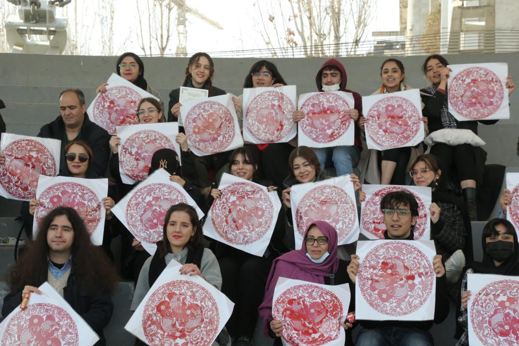 1月18日,伊朗青年學(xué)生在伊朗首都德黑蘭的一處公園展示中國春節(jié)裝飾品。當(dāng)日,伊朗德黑蘭大學(xué)孔子學(xué)院組織青年學(xué)生與中方教師一起學(xué)習(xí)傳統(tǒng)年俗、體驗(yàn)中國文化,共同迎接春節(jié)到來。