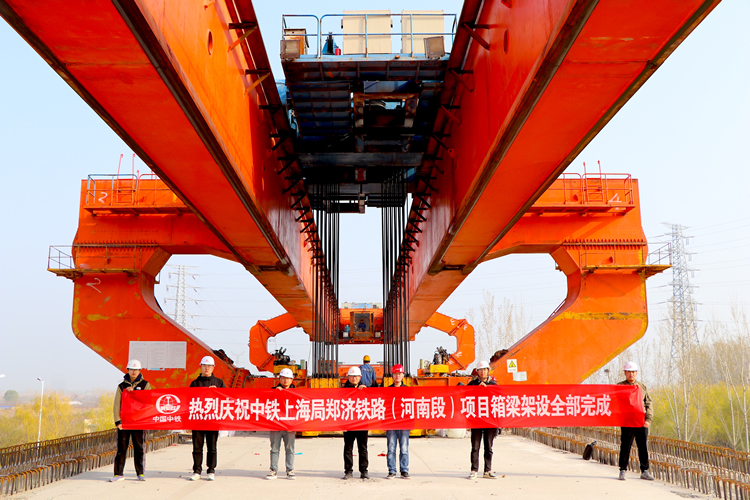 新華網(wǎng)鄭州3月23日電 近日,隨著鄭(州)濟(jì)(南)鐵路濮陽至省界段清豐特大橋最后一孔箱梁穩(wěn)穩(wěn)落下,標(biāo)志著由中鐵上海工程局承建的鄭濟(jì)鐵路濮陽至省界段箱梁架設(shè)任務(wù)全部完成,工程建設(shè)進(jìn)入最后沖刺階段。