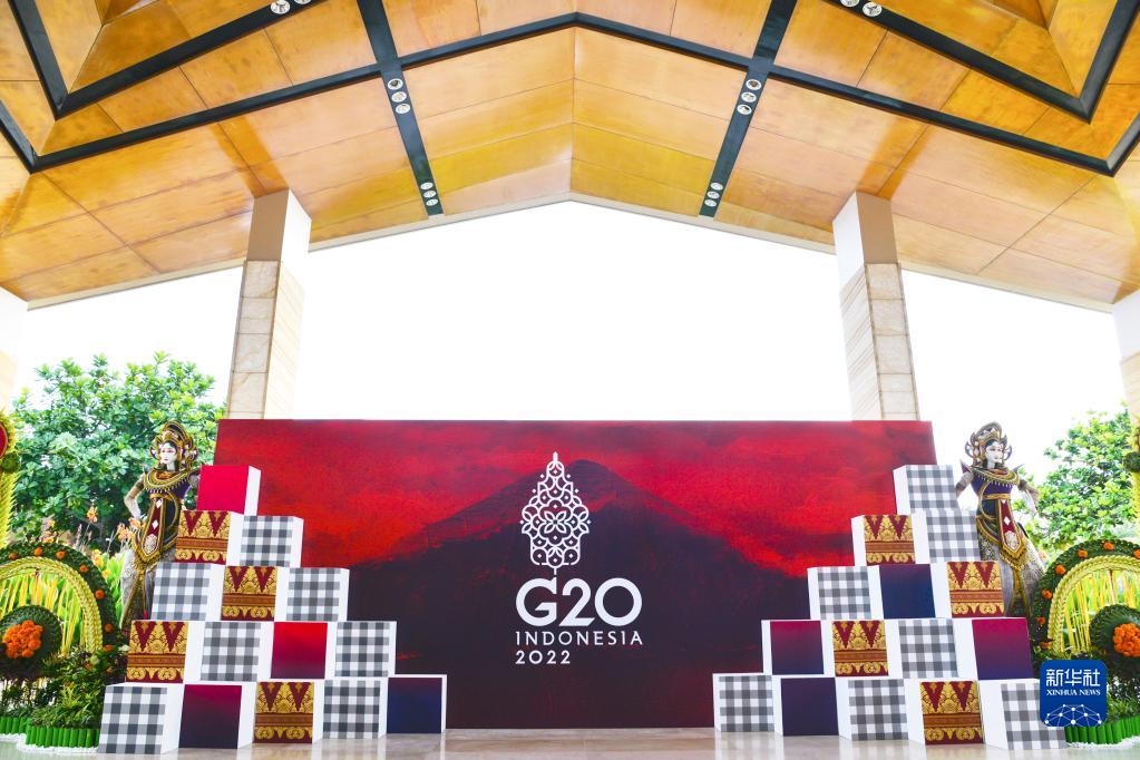 這是在印度尼西亞巴厘島拍攝的二十國集團(tuán)領(lǐng)導(dǎo)人第十七次峰會會場外的標(biāo)識(2022年11月11日攝)。新華社記者 徐欽 攝