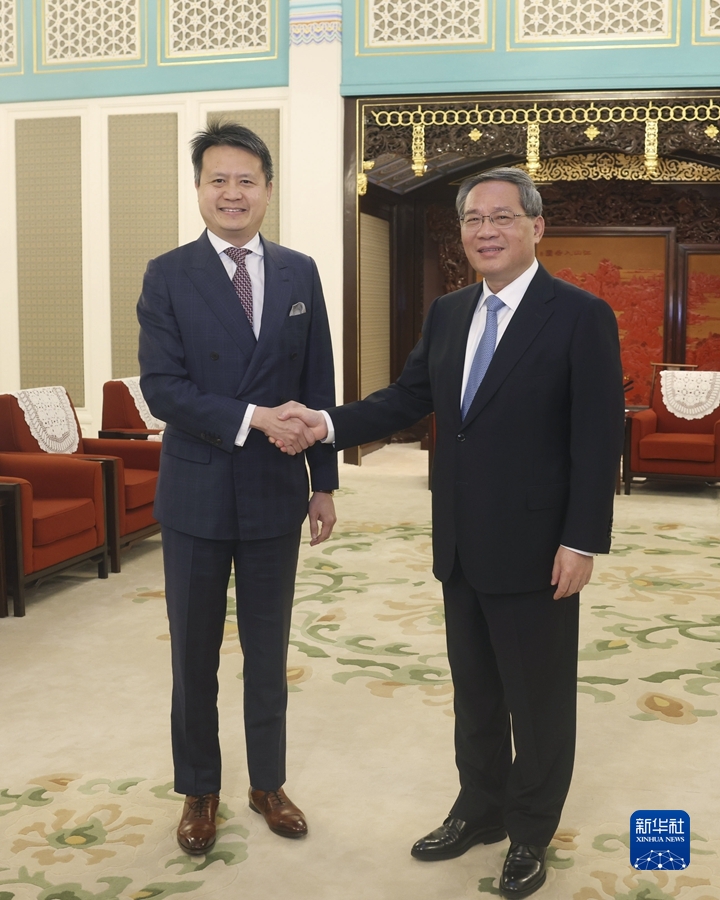 4月27日上午,國務(wù)院總理李強(qiáng)在北京中南海紫光閣會(huì)見世界知識(shí)產(chǎn)權(quán)組織總干事鄧鴻森。新華社記者劉衛(wèi)兵攝